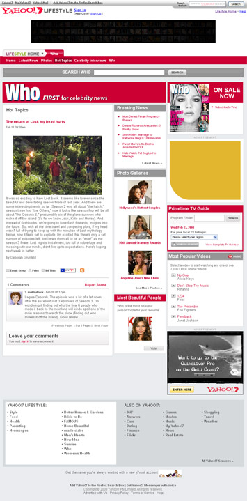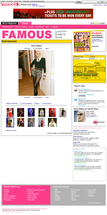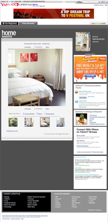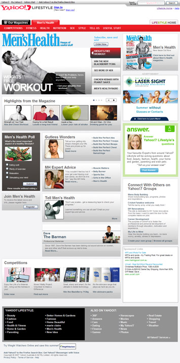 Creation of the website required me to code highly individually branded home, article, gallery, search, promotion and navigational pages for each magazine brand, for inclusion into Yahoo!'s content management system.